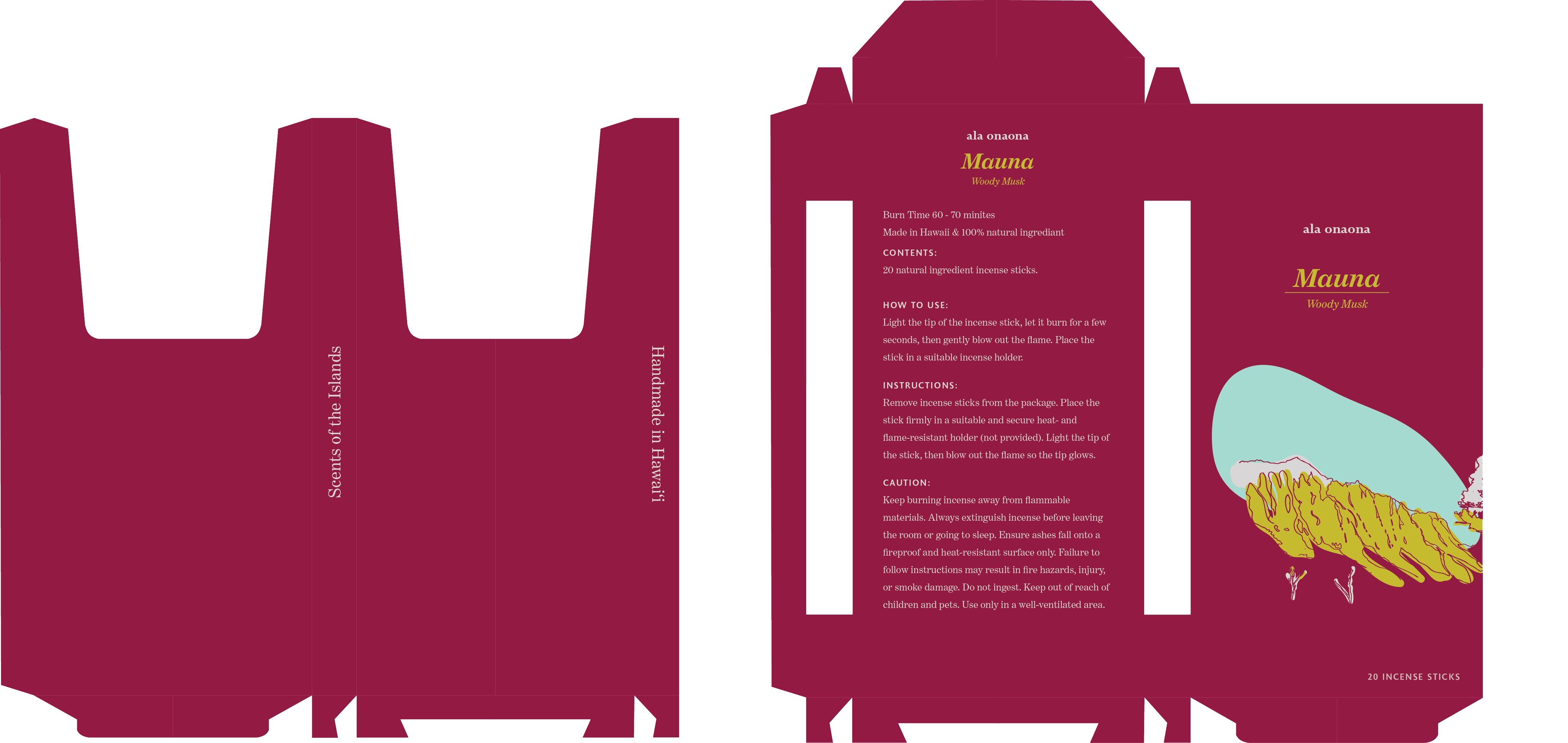 "ala onaona" is incense brand which is handmade in Hawaii. "ala" means "path" and "onaona" means "fragrance" in Hawaiian. The brand is inspired by the natural beauty of Hawaii and the spiritual significance of incense.